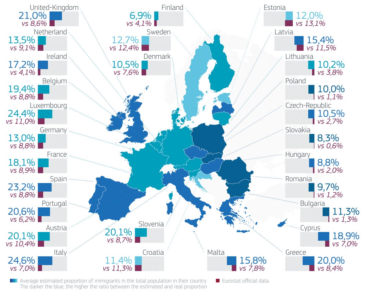 Pablo Perez On Twitter Europeans Were Asked To Estimate The Share Of Immigrants In Their Country Here Estimation Vs Reality By Eu Country In 19 Eu Countries Estimated Proportion At Least Twice The