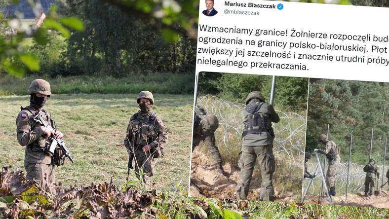 Mariusz Błaszczak o siatce przy płocie. Wojsko rozpoczęło w środę budowę ok. Widać na nich między innymi że przed dotarciem na tereny przygraniczne zwiedzali białoruskie miasta jak zwykli turyści.